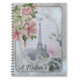 El cuadro es de la Torre Eiffel con toques de flores rosadas. El color está principalmente en grises y rosados.