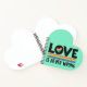 El cuaderno del mes del orgullo LGBTQ con el título "el amor nunca está mal" en letras de mayúsculas negras decoradas con un pequeño corazón de arco iris y una franja de colores sobre un fondo verde claro.