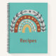 El diseño moderno y artístico presenta un doodle de arco iris de Boho dibujado a mano en tonos tierra sobre fondo acuático. Personalizable de texto "Recetas" en un tipo de letra moderno de color terra