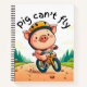 Cerdo no puede volar, ¿puede andar en bicicleta? Esta imagen muestra a un cerdo personalizado montando una bicicleta en un camino de tierra. El cerdo está usando un casco amarillo y tiene una expresión alegre en su cara. El fondo es un bosque pintoresco con árboles y nubes. Las palabras "El cerdo no puede volar" están escritas en la parte superior de la imagen, sugiriendo que el cerdo está desafiando las expectativas. La imagen es luminosa y colorida, con un tono lúdico y caprichoso. Capta la idea de que aunque los cerdos no pueden volar, todavía pueden divertirse y aventurarse. La imagen promueve un mensaje positivo sobre aceptar la individualidad y perseguir tus pasiones.