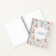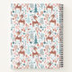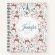 Portátil espiral con un adorable patrón de Navidades. Cerveza de invierno con cordones que cuelgan alrededor de un bosque de árboles y hierbas. Un círculo blanco se cubrió encima con su nombre y monograma inicial dentro.