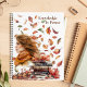 Un ordenador portátil con un mensaje inspirador de Conocimiento es el poder en la esquina superior izquierda con un ilustracion acuarela de un chica con el pelo barrido por el viento y una pila de libros entre las hojas giratorias soplando en tonos de otoño silenciosos. En el fondo hay un pincel de acuarela que se atiende en tonos neutros para que coincida con los ilustraciones. Un cuaderno con un mensaje motivador para los estudiantes que comienzan un nuevo año escolar. Estilos adicionales y diseños de papel disponibles. Puede ser necesario ajustar el ilustracion en función de los distintos tamaños.