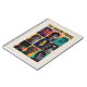 Colorida cuadrícula de estilo retro con los miembros del Escuadrón del Suicidio: Harley Quinn, Bloodsport, King Shark, Polka-Dot Man, Ratcatcher 2, Javelin, Peacemaker, The Thinker y Colonel Rick Flag.