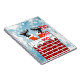 Funny Santa claus atrapado en un cuaderno de chimenea, este diseño tiene un fondo azul del cielo con nieve y copos de nieve