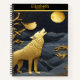 Bajo un amplio cielo nocturno, un majestuoso lobo dorado se alza sobre un paisaje sereno, aullando apasionadamente a una luna luminosa. La escena captura la esencia del desierto, la soledad y la belleza encantadora de la naturaleza mientras la luz de la luna se refleja en el agua. NOTA Para Cambiar El Texto Utilice La Herramienta Editar Uso Del Diseño