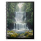 El cuaderno de Waterfall Landscape. El tranquilo paisaje cuenta con una majestuosa cascada rodeada de flores vibrantes y coloridas, que crean una serena y encantadora obra maestra natural.