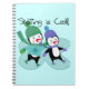 Dos pingüinos patinan sobre el estanque congelado vestido con rayas, coloridos gorras de invierno, bufandas y mitones y texto negro dice Patinaje sobre temas de patinaje: camisetas, tazas, tarjetas, bolsas, bolsos, almohadas, patines, pegatinas y mucho más!