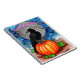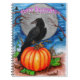 Pintura original de Sandra Gale para la temporada de Halloween con un cuervo negro encaramado en una calabaza. Gran diseño para niños y adultos para celebrar la espeluznante fiesta de Halloween.