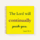 Un lindo cuaderno, este artículo es un gran diario de oraciones. "El Señor te guiará continuamente" escrito en hermosas letras azul marino y púrpura sobre un fondo amarillo. Hace un gran regalo para un ser querido.