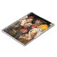 Este diseño presenta un cuadro del artista alemán Karl Gussow (1843-1907). Capta un momento afectuoso entre un anciano y su querido gato mascota, mientras que tres mujeres, tal vez familiares, lo rodean. La pintura exuda calidez, domesticidad y la alegría de simples momentos compartidos. El anciano, de pie con una expresión gentil y alegre, sostiene al gato cerca de su rostro como si admirase a su atesorado compañero. Su expresión despierta afecto y deleite, mostrando al gato como una importante fuente de compañía en su vida. El gato, lleno de contenido y relajado, está retratado con una piel detallada de tabby, añadiendo una calidad de vida a su presencia. Las tres mujeres, también de pie, rodean al anciano, observando su interacción con el gato con calidez, como si estuvieran familiarizadas con su profundo cariño y amor por el animal. La cuidadosa composición de Gussow, con el anciano y el gato en el centro rodeados por las mujeres, enfatiza el tema del amor y la conexión. La pintura celebra las simples alegrías de la vida, particularmente la compañía entre los humanos y los animales, y también captura la naturaleza comprensiva y de buen corazón de las relaciones familiares. Karl Gussow pintó la obra original en 1876.