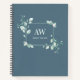This elegant personalized notebook features delicate watercolor eucalyptus greenery and botanical floral frame on a blue grey background. Personalize the cover with your initials and name to create a unique notebook for journaling, note-taking, planning, or work.