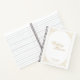 Regalo de bloc de notas en espiral islámico para el planificador de la boda musulmana. Fondo de marfil blanco de lujo con dos tipos de letra de escritura elegante clásica en color oro. Hay un vintage diseño de esquina barroca de filigree para la frontera. Puede editar los nombres de la novia y el novio y la fecha de matrimonio o compromiso. Puede agregar texto en la parte posterior de la lista de comprobación. Puede cambiar los colores de la espiral. Si no desea que los papeles alineados escriban su plan en el libro, puede cambiarlo seleccionando una de las opciones de la sección "Estilo de papel interno". Elegante. HerLineForDesign en Zazzle.