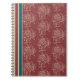 Un elegante cuaderno en espiral, con motivos florales formalizados y tumbonas de color beige y azul oscuro sobre un rico fondo burdeos. ¡Haría un diario excelente!