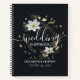 Cuaderno Elegante Boda de guirnaldas florales en blanco neg