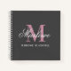 Magnífico portátil de Monograma Gris Oscuro con el nombre del guión blanco rosado para su nueva oficina en el hogar, trabajo administrativo y profesional, regreso a la escuela, dibujos de arte, notas de recetas, etc. Elija entre una variedad de tipos de inserción, incluyendo regla amplia, regla de colegio y en blanco para esbozar.
