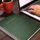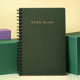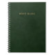 Un cuaderno elegante que presenta una textura de cuero verde oscuro con acentos de guión dorado. Este diseño elegante y sofisticado ofrece un toque premium, lo que lo hace perfecto para anotar notas, ideas o pensamientos importantes de una manera refinada y lujosa.