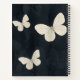 La imagen muestra un cuaderno negro con mariposas en su centro.