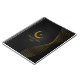 Cuaderno elegante del planificador de eventos del Ramadán con las líneas onduladas de oro.