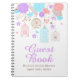 Elegante libro de firmas de fiesta de desposorios floral púrpura y azul. El texto se puede cambiar para adaptarse a sus necesidades.