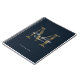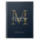 Cuaderno de monograma dorado azul marino metálico de guion elegante
