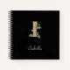 El elegante portátil negro presenta un monograma botánico dorado en el centro.