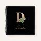 El elegante portátil negro presenta un monograma botánico dorado en el centro.