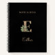 El elegante portátil negro presenta un monograma botánico dorado en el centro.