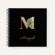 El elegante portátil negro presenta un monograma botánico dorado en el centro.