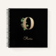 El elegante portátil negro presenta un monograma botánico dorado en el centro.