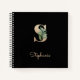 El elegante portátil negro presenta un monograma botánico dorado en el centro.