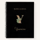 El elegante portátil negro presenta un monograma botánico dorado en el centro.