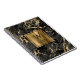 Un cuaderno elegante con una imagen de fondo de mármol negro con venas doradas. Personalízalo con tu monograma inicial en letra decorativa y tu nombre en grabado de copperplate en un Relieve metalizado de oro cepillado.