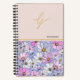 Hermos cuaderno de monograma dorado falso combinado con un jardín de flores rosas y azules. La parte posterior está cubierta de rosa e incluye un pequeño corazón.