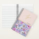 Precioso cuaderno de monograma dorado falso combinado con un jardín de flores rosas y azules. La parte posterior está cubierta de rosa e incluye un pequeño corazón.