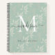 Cuaderno Elegante Monograma Hojas Botánicas Verde Turquesa