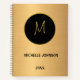 Cuaderno Elegante Monograma profesional moderno de oro negr