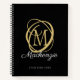 Cuaderno Elegante Monograma Script Nombre Oro Negro