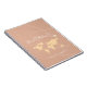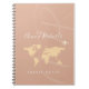 Nombre e iniciales impresas en un estilo de letra manuscrito, con un mapa del mundo y un pequeño avión, en un polvoriento fondo rosa... para escribir sobre sus viajes por el mundo.
