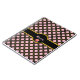 Elegante patrón de diamante negro y dorado en un portátil de fondo rosa. Se puede personalizar el texto en flor.