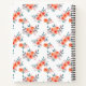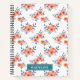 Moderno y retro, este cuaderno es perfecto para casa, oficina o escuela. El diseño presenta flores de melocotón de color suave con hojas de color verde claro sobre un fondo blanco. El texto verde azulado en monograma "M", que se encuentra dentro de un borde blanco y verde azulado de caja, se puede cambiar para que se ajuste a la inicial de cualquier persona. Gran regalo para Navidades o cualquier cumpleaños durante los meses fríos.
