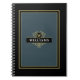 Añada un poco de estilo a su oficina corporativa o de su casa con este elegante bloc de notas en espiral que presenta un patrón clásico de pinstripe gris, un emblema negro y dorado, y nombre inicial y personalizable. Este diseño es elegante y masculino, y será un gran regalo para ti mismo, la familia, los amigos o los compañeros de trabajo. Modifique el nombre y el inicial para que se ajuste a sus necesidades.