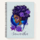 Este diseño elegante y moderno presenta una hermosa chica afroamericana con decoración de color morado en el pelo. Puede personalizarlo con su nombre escrito en caligrafía elegante. También es un regalo perfecto para mujeres afroamericanas fuertes e independientes.