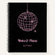 Este elegante cuaderno cuenta con una moderna bola de disco de estilo retro dibujada a mano con un guión moderno. Puede elegir cualquier color para la bola disco, el texto y el fondo adentrándose en la herramienta de diseño. El diseño, como se muestra aquí, es rosa claro sobre un fondo negro oscuro.