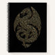 This notebook features an elaborate Celtic dragon formed entirely from continuous knotwork, symbolizing strength, continuity, and ancient guardianship. Rendered in a refined palette of dark emerald, antique bronze, and charcoal black, the design balances bold presence with heritage restraint. Subtle, old-world print distress and softened edges evoke timeworn craftsmanship without compromising clarity. Flat, print-first artwork on a black background makes this piece ideal for those drawn to myth, tradition, and timeless Celtic symbolism.