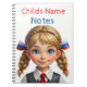 Cuaderno en espiral de notas de colegiala rubia