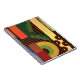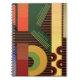 Cuaderno en espiral de 80 páginas de perspectiva. Perspectiva es un diseño abstracto creado por Anna M. Asbury y consiste en formas multicolores sobre un fondo marrón.