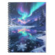 Hermoso cuaderno en espiral con una escena soñadora de un lago invernal con luces del norte brillantes, montañas nevadas, hielo brillante y un reflejo mágico a través del agua. Perfecto para escribir en un diario, tomar notas, escribir, la escuela y para cualquiera que ame paisajes invernales celestiales y papelería soñadora. Un diseño de cuaderno pacífico y encantador lleno de nieve, luz y belleza de aurora.