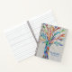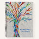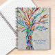 Este cuaderno decorativo presenta un mosaico multicolor del Árbol de la Vida sobre un fondo gris claro.