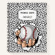 Haz que el regreso a la escuela o cualquier ocasión especial sea divertido con este cuaderno personalizado para amantes del béisbol. El diseño presenta una mano fuerte sosteniendo una pelota de béisbol que rasga un fondo de letras en blanco y negro. Para hacerlo aún más especial, también está monogramado y personalizado con nombre o iniciales o cualquier texto que desees. Este cuaderno genial es perfecto para los amantes del deporte o el béisbol, un gran complemento para los suministros escolares de tus hijos.