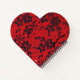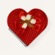 Fotografía de color de un arco rojo y flores blancas, y encaje negro sobre un fondo rojo.